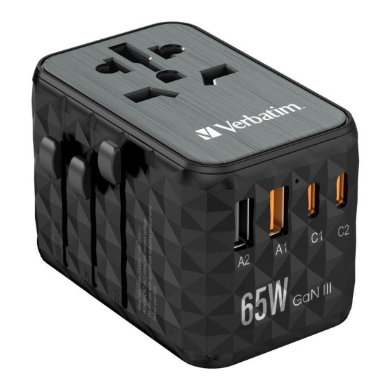 Adapter podróżny Verbatim UTA-05 GaN III globalny 2xUSB-C PD QC 4+ 65W, 1xUSB-A 60W, 1xUSB-A 5W