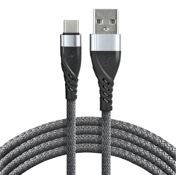 Kabel przewód pleciony USB - USB-C / Typ-C everActive CBB-2CG 200cm z obsługą szybkiego ładowania do 3A szary